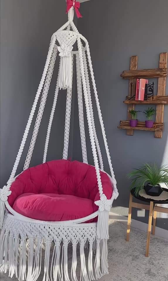 কটন সুতোর তৈরি দোলনা। সাদা কলার সাথে লাল পিলো ফ্রি